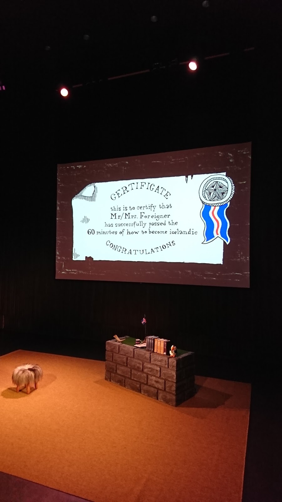 Tam už 5 rokov úspešne dávajú one man show How to become Icelandic in 60 minutes. Počas týchto 60 minút sme sa dozvedeli 15 pravidel, ktoré musíme dodržiavať, aby sme sa stali pravými Islanďanmi. Okrem iného sme sa konečne naučili ako vysloviť meno sopky Eyjafjallajökull (eija - fjatla - jokutl). Medzi tými pravidlami som si zapamätal iba pár: